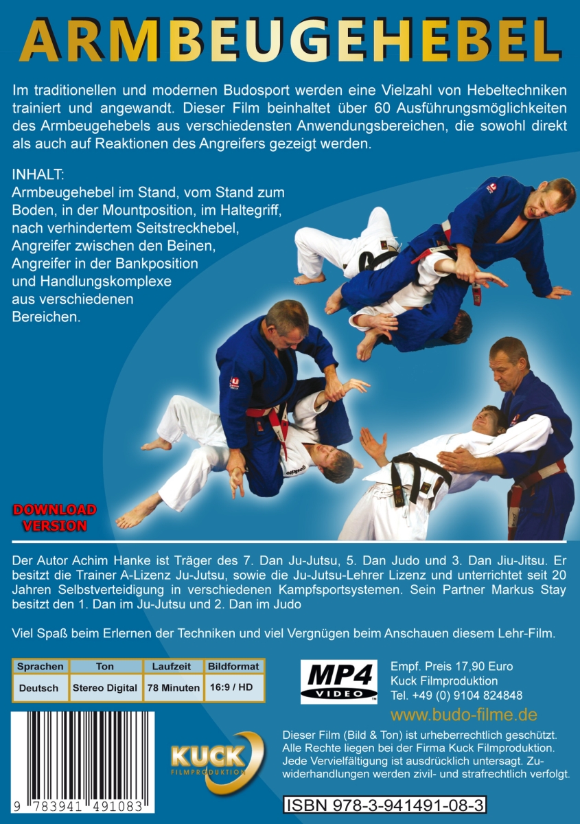 Im traditionellen und modernen Budosport werden eine Vielzahl von Hebeltechniken trainiert und angewandt. Dieser Film beinhaltet über 60 Ausführungsmöglichkeiten des Armbeugehebels aus verschiedensten Anwendungsbereichen, die sowohl direkt als auch auf Reaktionen des Angreifers gezeigt werden.