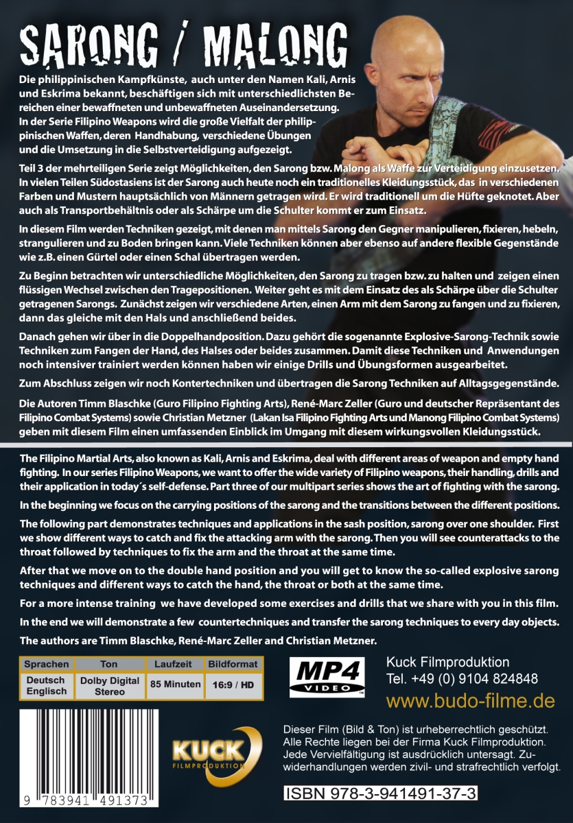 The authors are Timm Blaschke (Guro Filipino Fighting Arts), René-Marc Zeller (Guro and German representative of Filipino Combat Systems) and Christian Metzner (Lakan Dalawa Filipino Fighting Arts and Manong Filipino Combat Systems). They learned the art of the sarong under Jeff Ray Dionaldo, Jeff Espinous, Ron Balicki and Doug Marcaida as well as adding their own concepts for this weapon. They want to share their insights into the field of the sarong with this Film.